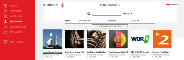 Hier können Sie innerhalb der Sendungen suchen nach Genre oder Stichwort.